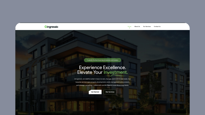 A premium real estate company website designed to showcase properties and drive client inquiries.